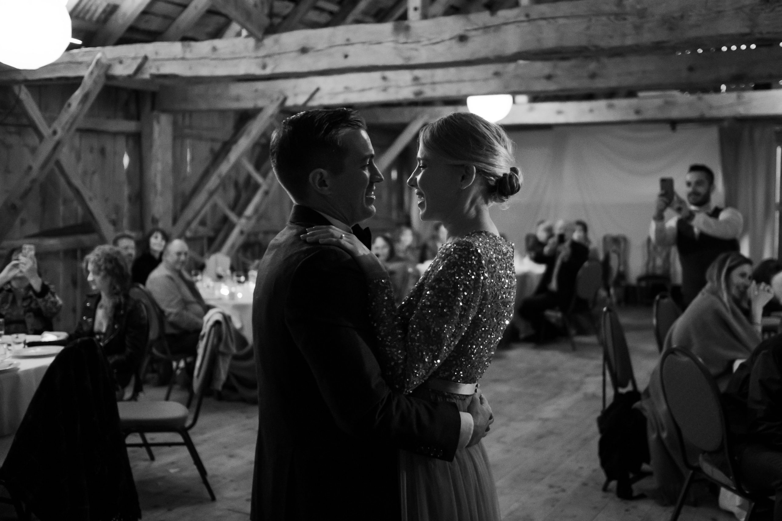 Night came slowly. It does that in Norway. The reception moved inside to the communal spaces, where floor-to-ceiling glass turned the forest into wallpaper. Candles were lit. Reflections doubled the room. At some point the tree line and the dance floor became the same thing, and nobody seemed to mind.