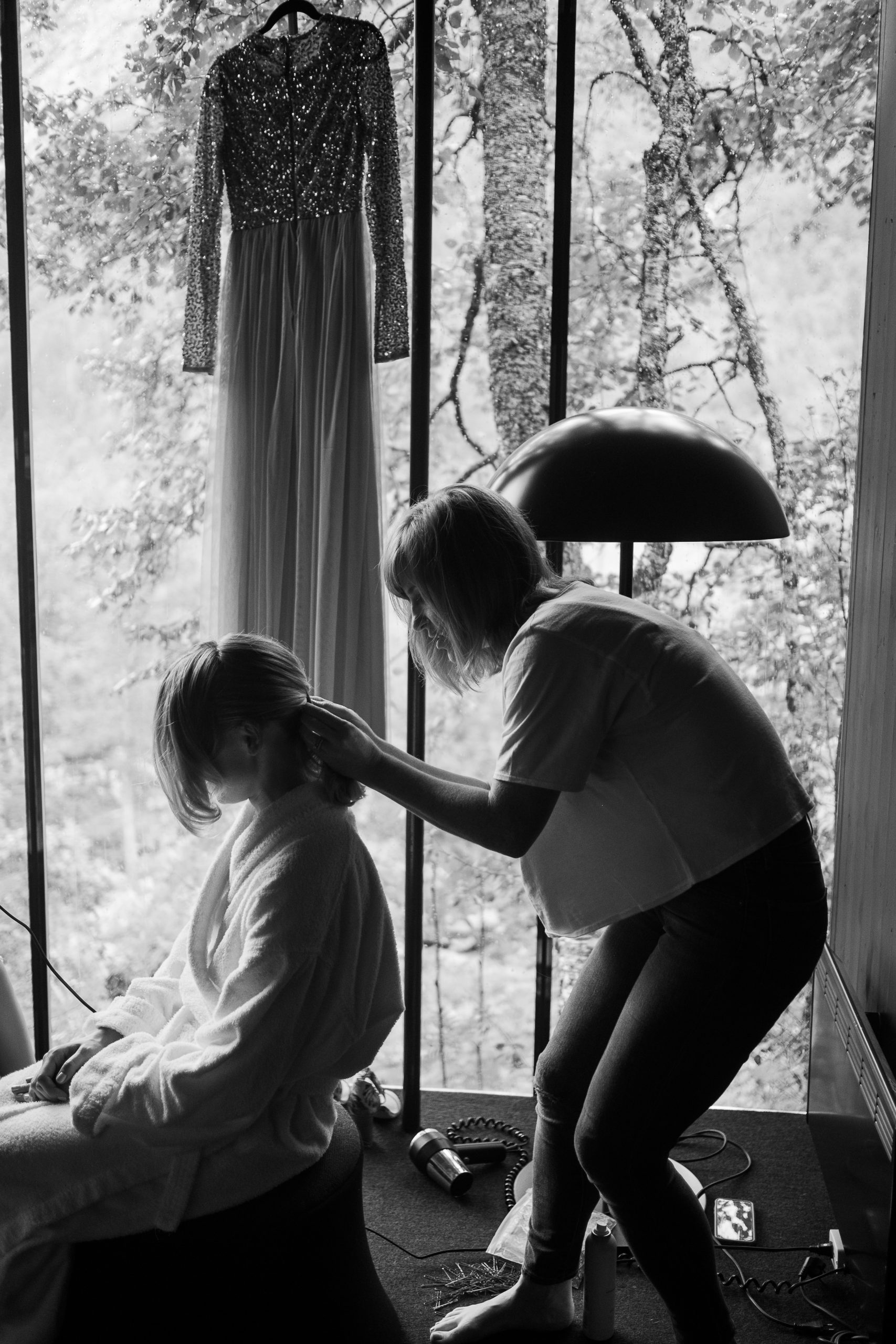 Juvet Landscape Hotel sits above the Valldøla river in Valldal, Norway. Glass-walled cabins built into a mountainside, each one facing the gorge and the birch forest below. You might recognise it from Ex Machina. The architecture does what the best architecture does: it gets out of the way and lets the landscape do the talking. When Justyna and Jarrod told us this was where they were getting married, we knew the place. We didn’t know the half of it.