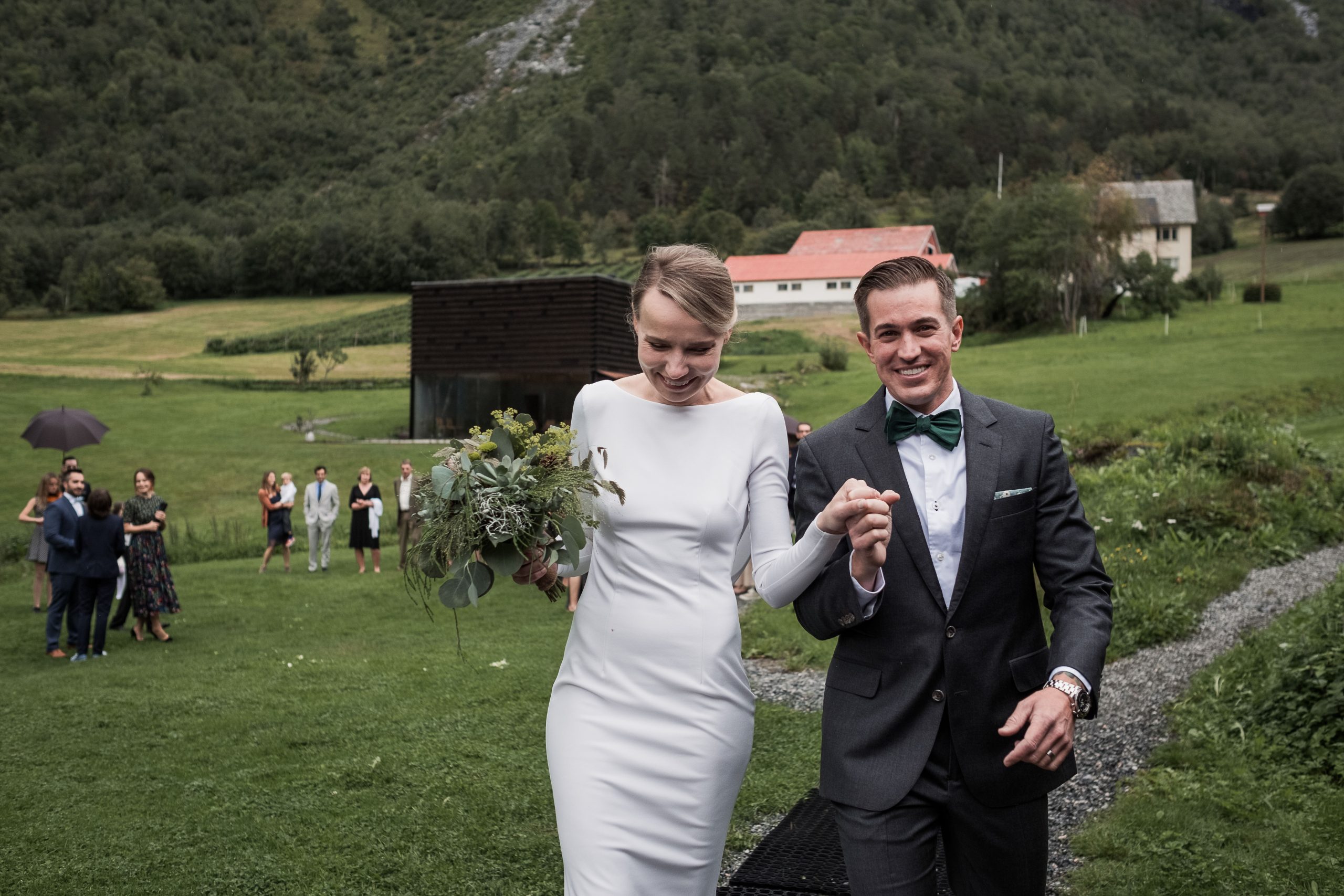 The ceremony was set against the valley. No church. No four walls. The river somewhere below, the mountains everywhere else. Guests had come from the States, from Poland, from corners of the world that have nothing in common except these two people. When you take a group like that and drop them in the Norwegian wilderness for a weekend, something happens that you can’t plan. People stop looking at their phones. They look at each other.